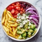 This Lemon Herb Mediterranean Pasta Salad is a vibrant, refreshing dish perfect for warm days or as a light meal. Featuring tender penne pasta tossed with crisp Romaine lettuce, fresh vegetables, kalamata olives, sun-dried tomatoes, and tangy feta cheese, all brought together by a zesty lemon herb dressing. Ready in just 25 minutes, it’s a delicious taste of the Mediterranean that’s both easy and satisfying.