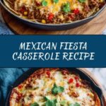 This Mexican Fiesta Casserole is a flavorful and hearty one-dish meal packed with seasoned ground beef, black beans, corn, diced tomatoes with green chilies, and rice, topped with melted cheddar and Monterey Jack cheese. Baked to bubbly perfection, it’s perfect for family dinners or casual gatherings with a vibrant Mexican flair.