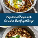 Mujaddarat Bulgur with Cucumber Mint Yogurt is a comforting Middle Eastern dish combining tender brown lentils and coarse bulgur cooked with aromatic spices and caramelized onions. It is served with a refreshing cucumber and mint yogurt sauce, offering a perfect balance of hearty and fresh flavors. This vegetarian recipe is ideal as a satisfying main course or a flavorful side.