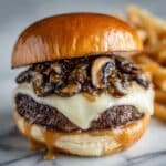 This Mushroom Swiss Burger recipe features juicy grilled beef patties topped with savory sautéed mushrooms and melted Swiss cheese, all nestled in toasted brioche buns. The mushrooms are cooked in a flavorful mixture of butter, olive oil, Worcestershire sauce, and beef broth, then finished with garlic and black pepper to add depth. Perfect for a quick 30-minute meal that’s sure to impress burger lovers.