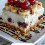 This No-Bake Banana Split Cake is a delightful layered dessert featuring a buttery graham cracker crust, creamy sweetened cream cheese, fresh bananas, crushed pineapple, cherry pie filling, and whipped topping. Topped with nuts, chocolate syrup, and maraschino cherries, it’s a refreshing, easy-to-make treat that requires no baking and is perfect for warm days or when you want a quick yet impressive dessert.