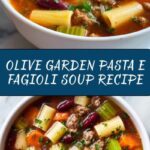 This Olive Garden Pasta e Fagioli recipe is a comforting Italian soup featuring a savory blend of ground beef, beans, diced vegetables, and ditalini pasta simmered in a rich tomato broth. Perfect for a hearty meal, this classic dish combines protein, fiber, and vibrant flavors for a delicious and satisfying experience.