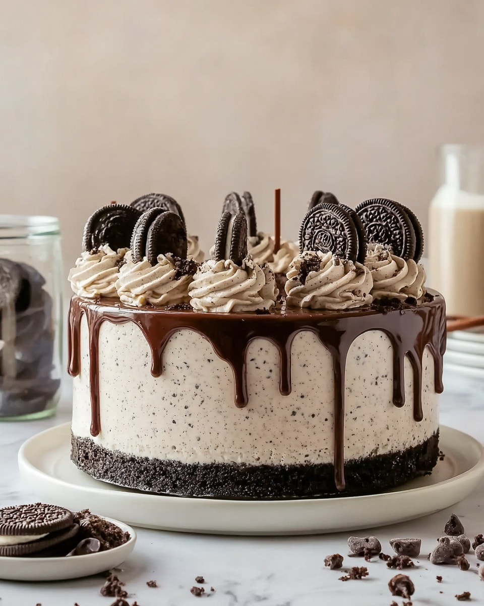 This Oreo Chocolate Cake is a rich and indulgent dessert combining moist chocolate cake layers with crushed Oreos baked right into the batter. Topped with creamy buttercream frosting and extra Oreo crumbles, it’s perfect for celebrations or any sweet craving.