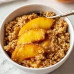 Reheat your crisp in a 350°F oven for about 15 minutes or until warmed through. This will refresh the topping’s crunch and warm up those luscious peaches just like freshly baked.