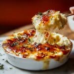 Transfer your cheese mixture into an oven-safe dish or pie pan and smooth out the surface evenly. Bake it for approximately 15 minutes, or until it’s bubbly and hot—this bubbling is your sign that everything is perfectly melted and ready for the next step.