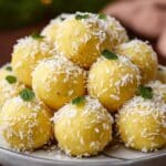 - Roll in coconut: Take each formed ball and roll it in additional shredded coconut, making sure each ball is evenly and fully coated with coconut flakes for a festive appearance and extra flavor.
