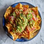 - Add Fresh Toppings: Evenly distribute the diced avocado, thinly sliced green onions, and if using, chopped fresh cilantro over the tortilla chips, adding fresh flavors and vibrant colors.