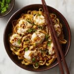 This Potsticker Noodle Bowl is a quick and flavorful dish featuring tender ground chicken, vibrant vegetables, and lo mein noodles tossed in a savory, tangy sauce with a hint of heat. Ready in just 20 minutes, it combines the comforting flavors of Asian cuisine with the ease of a one-pan meal perfect for busy weeknights.