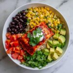 This vibrant Salmon Burrito Bowl combines perfectly seasoned baked salmon with wholesome brown rice, black beans, fresh vegetables, and a zesty Greek yogurt lime dressing. Ready in just 25 minutes, it’s a fresh, flavorful, and nutritious meal that’s easy to assemble and perfect for a quick lunch or dinner.