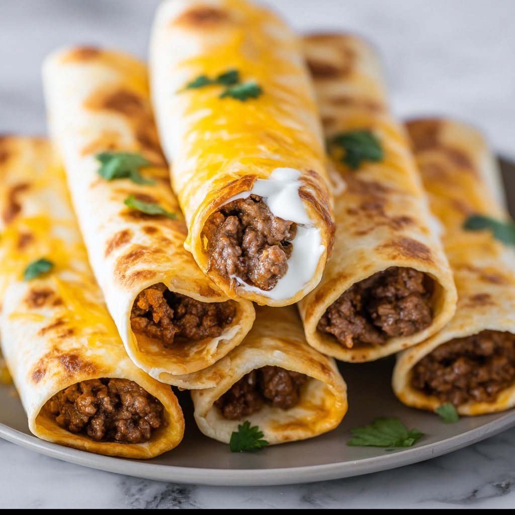 Delicious taquitos deserve fresh, vibrant garnishes that elevate each bite. A dollop of creamy guacamole adds a cool contrast to the spicy beef, while a sprinkling of shredded lettuce and diced tomatoes brings refreshing crunch and color. Don’t forget a drizzle of Healthy Mexican Crema or a side of your favorite hot sauce for that extra zing that makes the flavors pop beautifully.