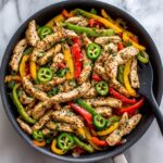 These Skillet Chicken Fajitas with Creamy Jalapeño Verde Sauce are a vibrant and flavorful Mexican-inspired main course. Tender strips of chicken are cooked with colorful bell peppers and onions, seasoned with a smoky spice blend, and served with a smooth, zesty jalapeño verde sauce. Perfect for a quick and easy dinner, this recipe balances bold flavors and creamy textures, customizable with optional toppings like avocado, cheese, and pico de gallo.