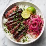 The beauty of this recipe lies in its simplicity. Each ingredient plays a crucial role: the skirt steak brings rich, meaty flavor; kosher salt and black pepper enhance without overpowering; neutral oil seals in the steak’s juices; and the cilantro chimichurri sauce adds a bright, herbaceous kick. Finally, the cooked white rice acts as the perfect canvas, balancing all these flavors in every delightful bite.