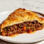 Unroll the crescent dough and carefully lay it over the beef filling, covering the entire surface. The dough will bake into a soft, golden crust that adds an amazing texture contrast to the savory meat below.