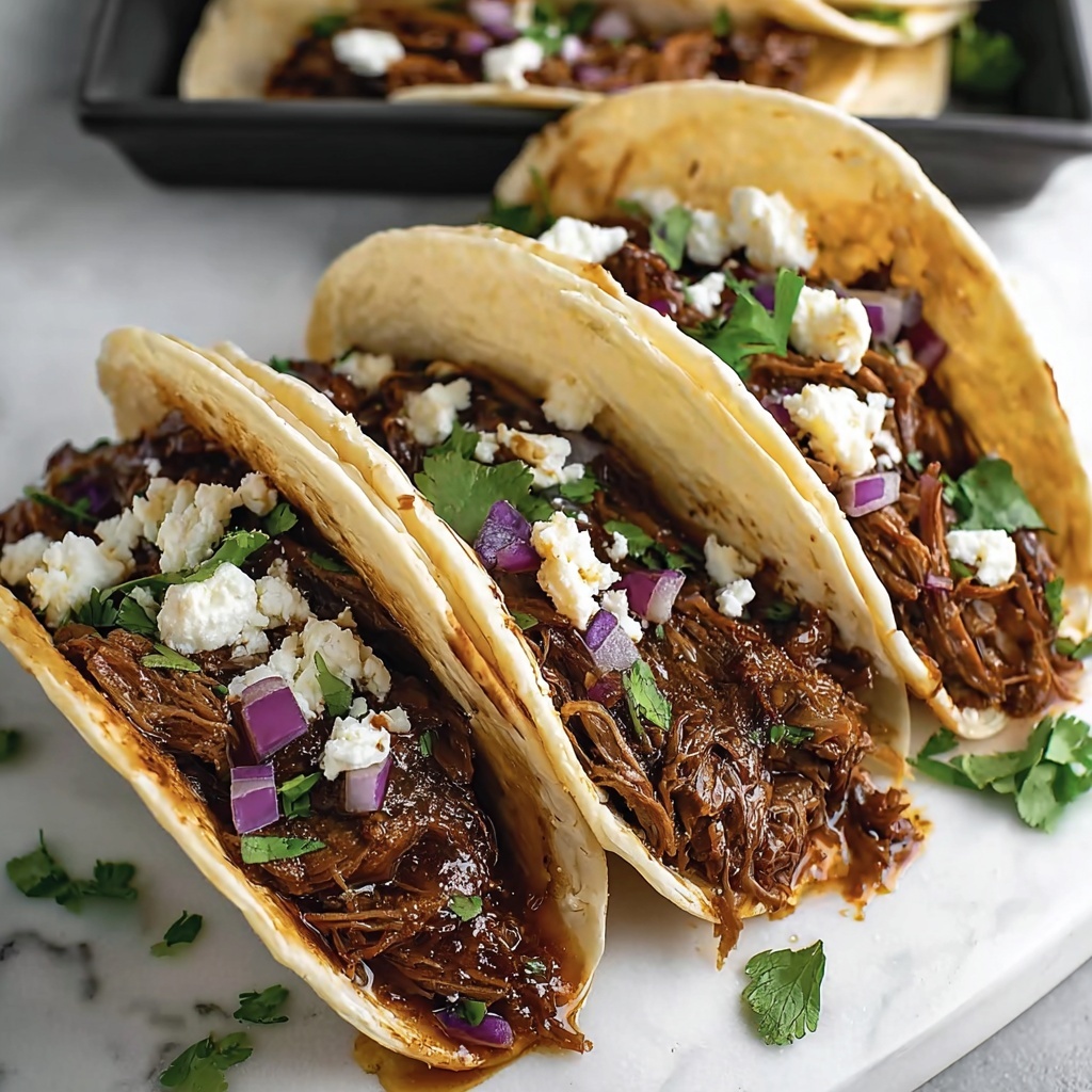 These Slow Cooker BBQ Beef Brisket Tacos are a delicious and effortless way to enjoy tender, smoky beef packed with rich BBQ flavors. Perfect for a crowd, this recipe uses a slow cooker to gently melt the brisket to juicy perfection. Served on warm tortillas with your choice of fresh toppings like cilantro, Monterey Jack cheese, and diced red onion, these tacos bring a satisfying mix of textures and vibrant tastes to your table.