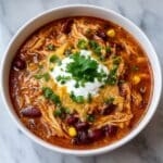 This Slow Cooker Chicken Taco Soup is a hearty, flavorful, and easy-to-make meal perfect for busy days. Combining tender chicken breasts with a mix of beans, corn, tomatoes, and taco seasoning, this soup simmers slowly to meld all the spices and ingredients into a deliciously comforting dish. Serve it with your choice of classic taco toppings like cheese, sour cream, and cilantro for a satisfying meal the whole family will enjoy.