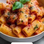 Spicy Basil Rigatoni is a creamy and flavorful Italian-American pasta dish combining tender rigatoni with a rich tomato and basil sauce, enhanced by a touch of heat from red pepper flakes and finished with Parmesan cheese. This easy weeknight meal delivers the perfect balance of spicy, creamy, and fresh flavors.