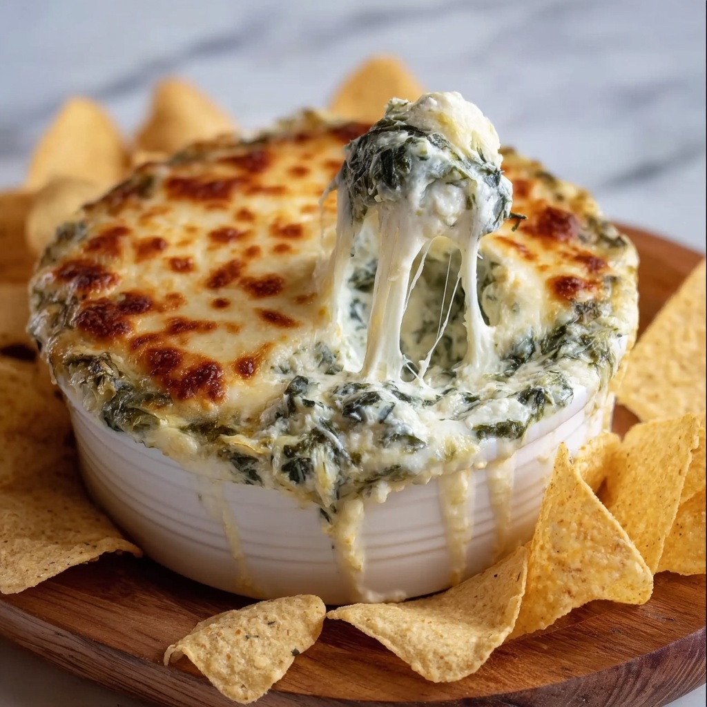 A rich and creamy spinach and artichoke dip that’s baked to golden perfection, combining tender spinach, tangy artichoke hearts, and a blend of cheeses for an irresistible appetizer perfect for any gathering.