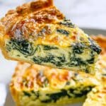 A delicious and savory spinach quiche packed with sautéed onions, garlic, fresh spinach, and a blend of Swiss and cheddar cheeses, all baked to golden perfection in a flaky crustless quiche base. Perfect for breakfast, brunch, or a light dinner.