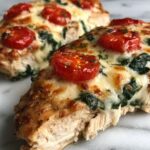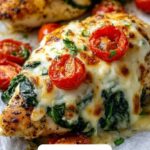 This Spinach Stuffed Chicken Breast recipe offers a delicious and healthy dinner option. Juicy chicken breasts are stuffed with a creamy mixture of fresh spinach, cream cheese, mozzarella, and Parmesan, then seared to golden perfection and baked until tender. This dish is perfect for a low-carb, gluten-free meal packed with protein and flavorful cheeses.