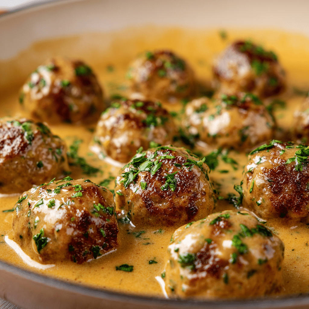 This classic Swedish Meatball recipe features tender meatballs made from a blend of ground beef and pork, seasoned with warm spices like allspice and nutmeg. Served in a rich and creamy gravy infused with beef broth, Dijon mustard, and Worcestershire sauce, it’s comfort food at its finest. Perfect for a cozy family meal, served over mashed potatoes, buttered egg noodles, or rice.