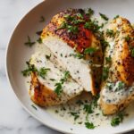 This Turkish Chicken with White Sauce recipe offers a deliciously tender marinated chicken fillet cooked to golden perfection in a skillet, topped with a creamy homemade white sauce made from mayonnaise and yogurt. Garnished with fresh parsley, it’s a simple yet flavorful dish perfect for a comforting meal.