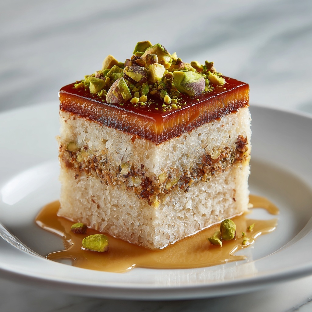 Patience is key! Allow the cake to sit for up to an hour so it can fully absorb the syrup. Afterward, garnish with ground pistachios, shredded coconut, or extra citrus zest to add a touch of elegance and extra flavor.