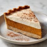 To elevate your pie, consider a dollop of coconut whipped cream or a sprinkle of toasted pecans on top. These garnishes add texture and a subtle sweetness that perfectly complements the spiced pumpkin filling.