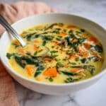 - For a creamier texture, blend part of the soup before adding the spinach.