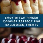 These Witch Finger Cookies pair wonderfully with a warm mug of spiced hot chocolate or a glass of cold milk—perfect for dipping! For a Halloween party, arrange them around a bubbling cauldron punch or accompany with fresh fruit slices for color contrast and a dash of brightness to balance the richness of the cookies.