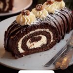 The finishing touches on your Yule Log Cake (Bûche de Noël) Recipe are what turn it from delicious to truly festive. Fresh cranberries provide a vibrant burst of red that contrasts wonderfully with the dark chocolate, while rosemary sprigs mimic pine branches, adding a charming holiday woodsy feel. A light dusting of powdered sugar over these decorations resembles freshly fallen snow, enhancing the winter magic and making your dessert look as stunning as it tastes.