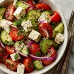 This Zesty Greek Cucumber Salad is a refreshing and vibrant summer dish that combines crisp cucumbers, juicy cherry tomatoes, sharp red onion, and fresh herbs with creamy feta cheese. Tossed in a tangy olive oil and red wine vinegar dressing with a hint of garlic, this salad is perfect for a light lunch or a flavorful side dish, chilled to enhance its zesty flavors.