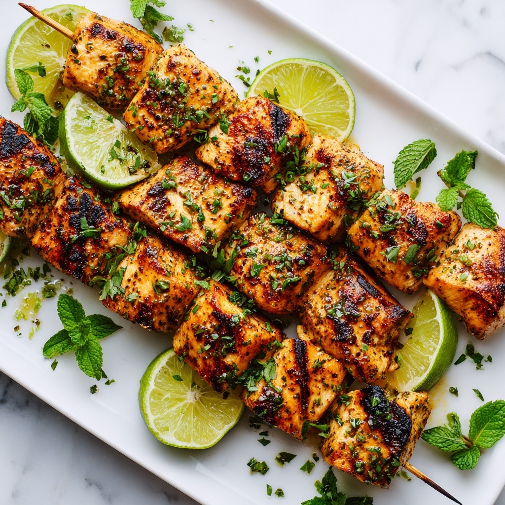 These Zesty Key Lime Grilled Chicken Taco Skewers combine fresh, marinated chicken breast cubes with the bright citrus tang of key lime juice and bold taco seasoning. Grilled to perfection over medium heat, the skewers deliver a smoky, flavorful bite that’s complemented by creamy avocado, fresh salsa, and a sprinkle of cilantro. Perfect for an easy, vibrant weeknight dinner or entertaining guests outdoors.